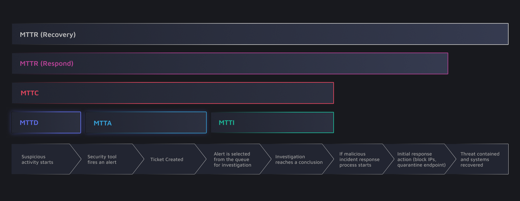 The components of MTTC highlight the most significant bottlenecks in the SOC workflow, with MTTA and MTTI often representing the largest time investments due to alert backlogs and complex investigation processes.